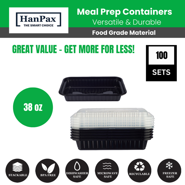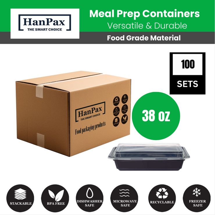 The Black Base Rect. Heavy Duty Container With Lids is a versatile and practical solution for storing and transporting food items. With a capacity of 38 ounces, these containers are perfect for packing meals, snacks, or leftovers. Made from high-quality, BPA-free materials, they are safe for food storage and approved by the FDA. The black base provides a sleek and professional look, while the lids ensure a tight and secure seal to prevent spills or leaks. This package includes 200 pieces, making it an excellent choice for home use or for businesses such as restaurants or catering services. These containers are heavy-duty, ensuring they can withstand daily wear and tear, and can be easily stacked for space-saving storage.