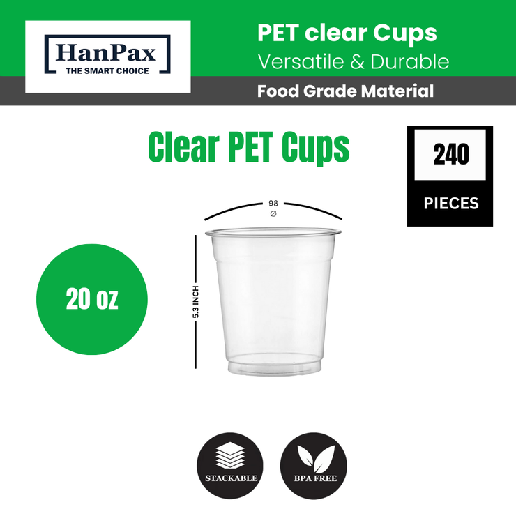 The PET Cold Cup 20 OZ is a high-quality disposable cup that is perfect for serving cold beverages such as soft drinks, iced tea, juices, and more. Made from clear PET plastic, this cup is lightweight, durable, and crystal clear, making it a great option for any foodservice operation.